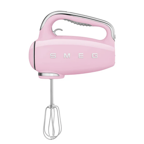 De Smeg HMF01PKEU Handmixer in roze biedt een opvallende retrolook en krachtige prestaties. Ideaal voor diverse mengtaken in de keuken.