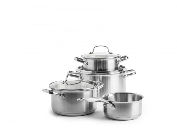 Voor de liefhebbers van hoogwaardig roestvrij staal introduceert Dagelijkse Kost een essentiële reeks kookpotten. Vervaardigd uit kwalitatief 18/10 roestvrij staal, met 18% chroom en 10% nikkel voor corrosiebestendigheid en roestvrije duurzaamheid. Deze potten zijn vaatwasserbestendig, waardoor schoonmaken moeiteloos is. Elk item in deze reeks combineert tijdloos design met een stevige gesmede bodem, wat stabiliteit op elke kookplaat garandeert. Of je nu op gas, elektrisch, keramisch of inductie kookt, deze potten passen zich aan. Bovendien zijn ze voorzien van ergonomische handgrepen die koel blijven, zelfs als de potten heet zijn. Ontdek hieronder de veelzijdige Dagelijkse Kost potten in roestvrij staal: