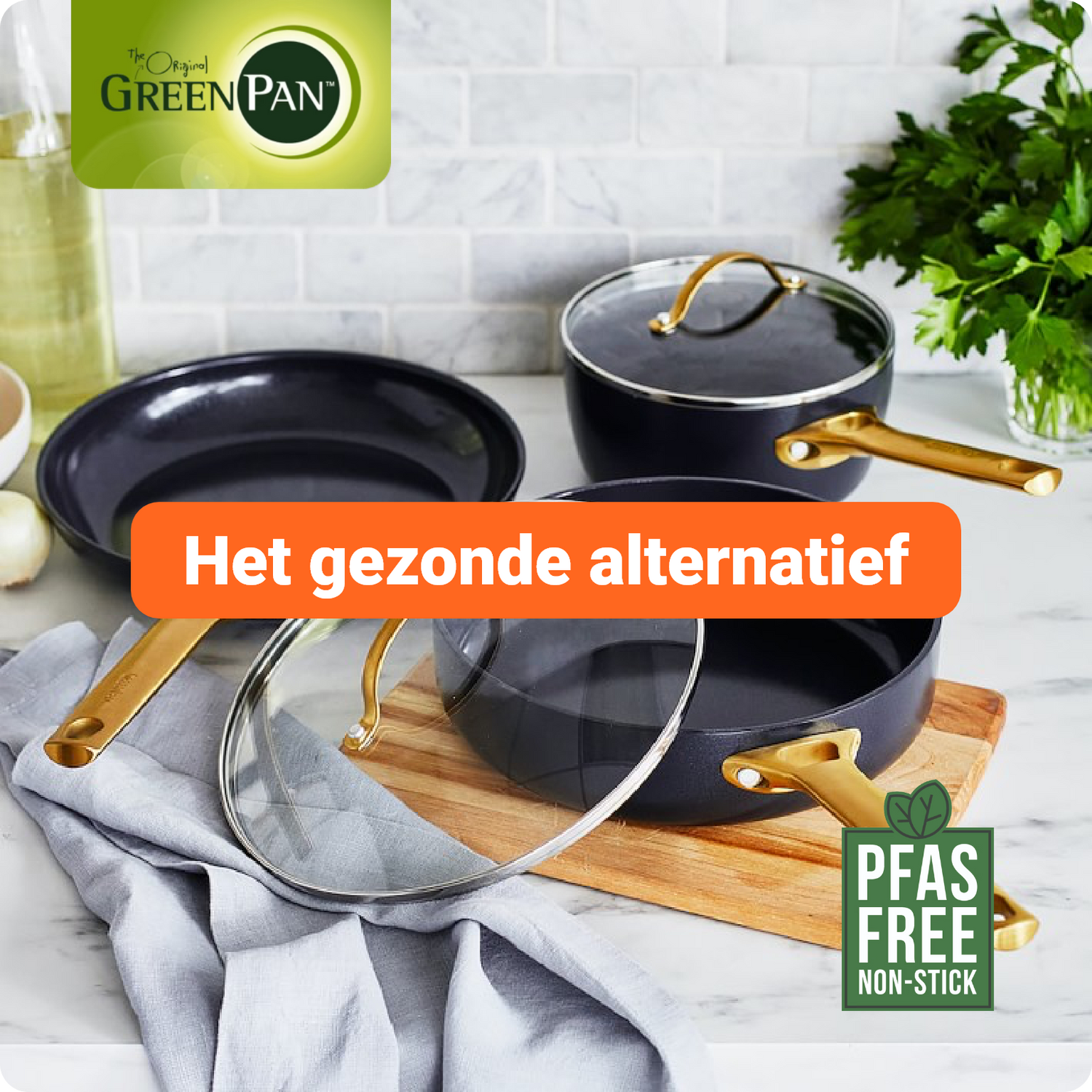 Ontdek de nieuwe dimensie van gezond koken dankzij GreenPan - de voortrekkers op het gebied van PFAS-vrije keramische antikleeflagen voor pannen, die een revolutie hebben ontketend in de wereld van koken. Ervaar zelf hoe deze baanbrekende innovatie je keukenervaring kan transformeren. Ontdek koken met GreenPan - een merk dat synoniem staat voor vernieuwing, welzijn en milieubewustheid. Laten we samen op ontdekkingsreis gaan in de wereld van PFAS-vrij koken en ontdek waarom GreenPan de onmisbare factor is voor jouw keuken.