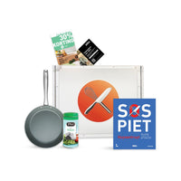 De SOS Piet box biedt een complete kookervaring voor zowel beginnende als ervaren koks. In deze box vind je niet alleen een braadpan van 24 cm, gemaakt van gerecycled aluminium met een antikleeflaag, maar ook een gesigneerd SOS Piet kookboek en Piet Huysentruyt's beroemde Italiaanse kruidenmix. Deze combinatie maakt het eenvoudig om authentieke gerechten te bereiden zoals Piet zelf. De antikleeflaag zorgt voor moeiteloos koken met minimale olie, terwijl de kruidenmix je gerechten een extra smaakvolle boost geeft.