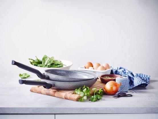 Geschikt voor alle warmtebronnen, van gas tot inductie, deze pannen zijn een veelzijdige aanvulling op elke keuken. De stevige constructie zorgt ervoor dat ze jarenlang meegaan, terwijl de graniet-look ze een tijdloze uitstraling geeft.