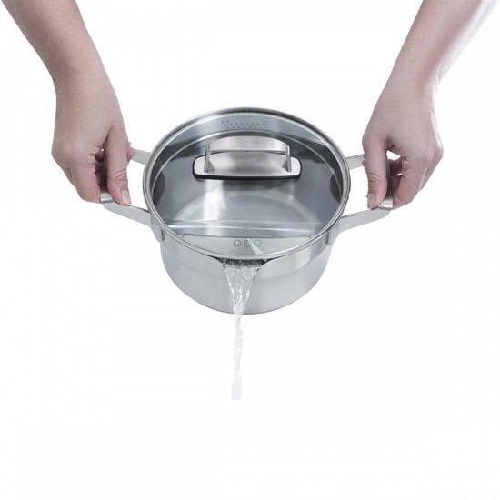 Deze soeppot is vervaardigd uit hoogwaardig roestvrij staal, wat duurzaamheid en uitstekende warmtegeleiding garandeert. Het deksel sluit goed af om smaken en sappen te behouden voor heerlijke maaltijden.