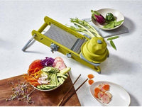Met de DE BUYER Mandoline "Swing-Plus" in groen snijd je moeiteloos en nauwkeurig, of je nu dunne plakjes, reepjes of julienne wilt maken.