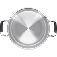 - Materiaal: 5-lagenmateriaal tot aan de rand (roestvrij staal-aluminium-roestvrij staal-inductiebodem-roestvrij staal)