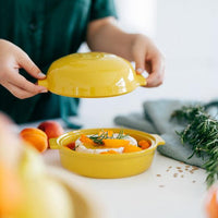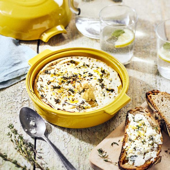 De Emile Henry Cheese Baker is speciaal ontworpen voor het bereiden van kaas om warm te serveren. Of je nu een voorgerecht wilt maken op basis van gesmolten brie, een minifondue wilt serveren of een diner in Franse 'raclette'-stijl wilt organiseren, deze Cheese Baker is de perfecte keuze. Het elegante ontwerp en de ideale grootte maken het een aantrekkelijke aanvulling op elke tafel. Het zorgt gegarandeerd voor een "wauw" effect: de kaas (warm en decadent romig) is klaar om op toast of crackers te worden gesmeerd of om over gestoomde groenten of gezouten vlees te worden gegoten.