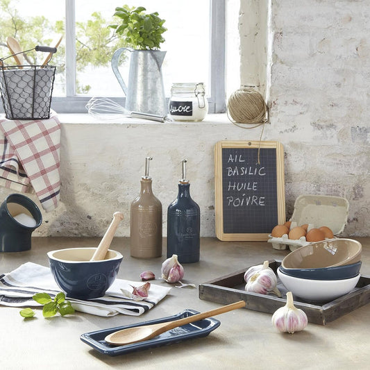 De Emile Henry oliekaraf in de kleur Truffle combineert stijl met functionaliteit. Met een inhoud van 0,4 liter is deze oliefles perfect voor het bewaren en serveren van je favoriete oliën, zoals olijfolie of speciale smaakoliën, op een stijlvolle manier.Optimale bescherming van je olie