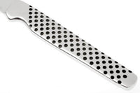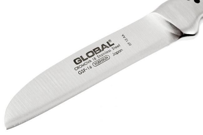 Het Global Gsf16 Schilmesje met een recht lemmet van 6 cm is een compact en scherp mes, perfect voor het schillen en snijden van groenten en fruit. Dit mes combineert Japans vakmanschap met duurzame materialen, ideaal voor zowel professionele koks als thuiskoks.