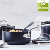 De GreenPan Barcelona steelpan is vervaardigd van duurzaam aluminium en biedt een gelijkmatige warmteverdeling. Hierdoor is de pan ideaal voor het verwarmen van sauzen, soepen en kleine porties. De steelpan is geschikt voor alle warmtebronnen, inclusief inductie, en kan veilig in de vaatwasser worden gereinigd. Met een compacte diameter van 18 cm is deze steelpan perfect voor dagelijkse kookbehoeften.