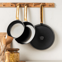 De opvallende gouden handvatten geven deze pannen een luxe uitstraling en maken ze gemakkelijk vast te houden, zelfs als ze heet zijn. Ze voegen een vleugje elegantie toe aan jouw keukeninrichting. Deze pannenset is niet alleen functioneel, maar ook een blikvanger in jouw keuken.