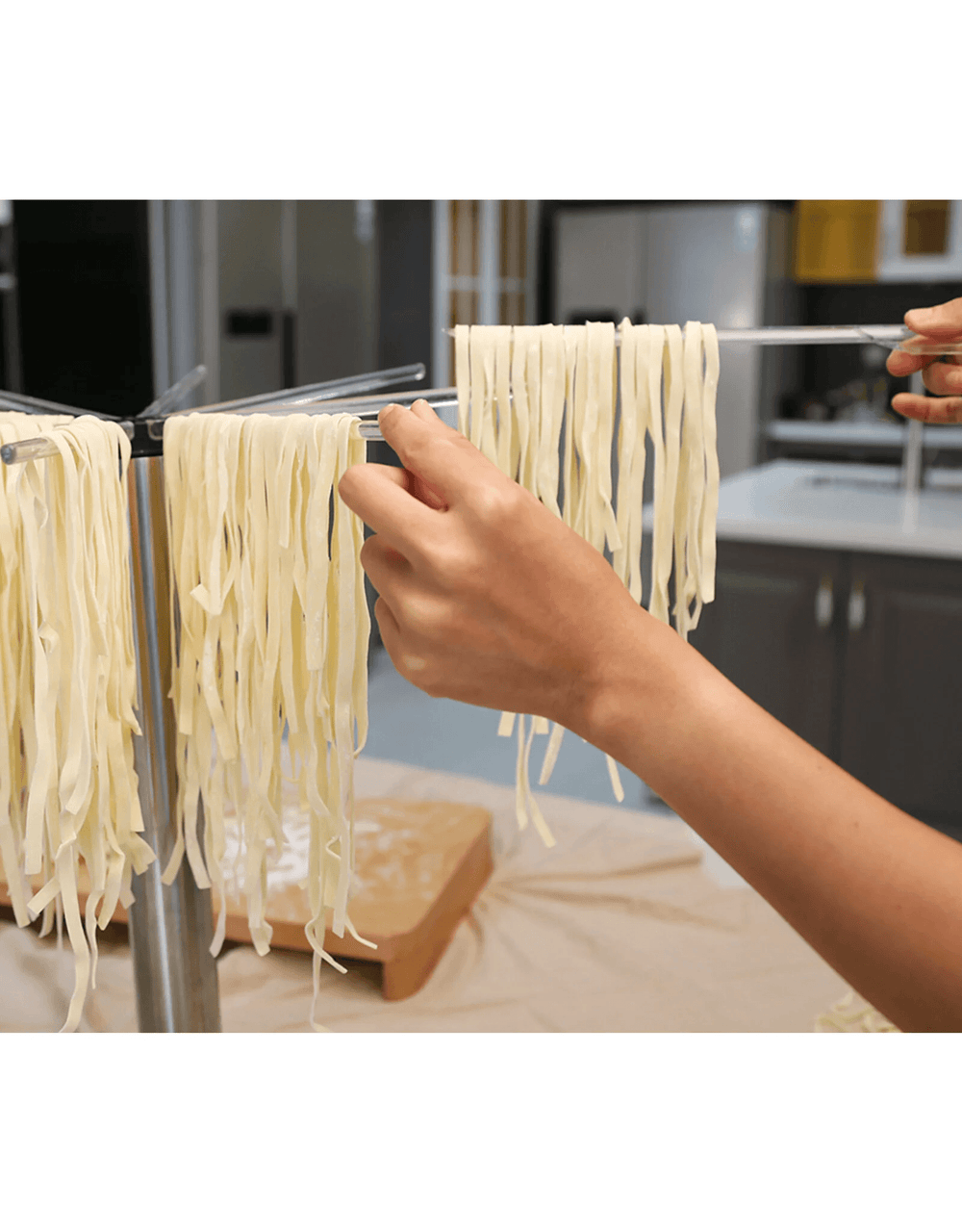 Het pastadroogrek heeft een stevige constructie voor stabiliteit. Dit pastadroogrek is gemaakt van hoogwaardig roestvrij staal voor duurzaamheid.