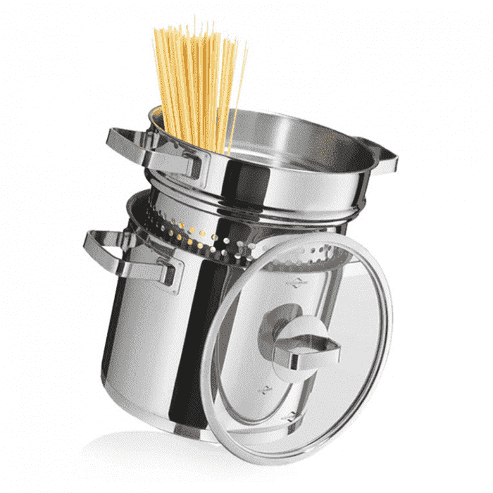 De KUCHENPROFI Kookpot met Pastainzet SAN REMO 22 cm COOK is een hoogwaardige en duurzame kookpan van topkwaliteit. Ideaal voor het bereiden van pasta, maar kan ook worden gebruikt voor andere gerechten.