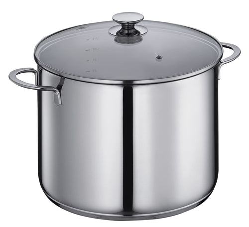 Met een inhoud van 12 liter is deze soeppot ideaal voor grotere hoeveelheden. Het glasdeksel zorgt ervoor dat je het kookproces goed kan volgen zonder warmte te verliezen. Het roestvrij staal is duurzaam, krasbestendig en eenvoudig schoon te maken. Handig: na het koken mag de pot gewoon in de vaatwasser. Zo hou je tijd over voor wat echt telt: genieten van een goede maaltijd.