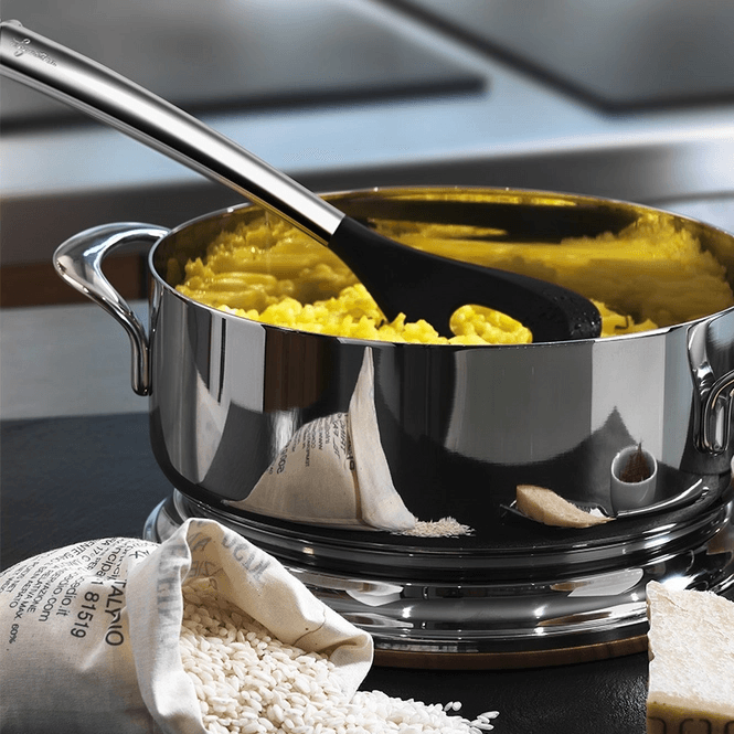 De Lagostina RISOTTIERA is geschikt voor alle warmtebronnen, inclusief inductie. Of je nu op gas, elektrisch of keramisch kookt, deze pan levert uitstekende prestaties.