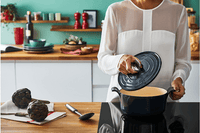 De geëmailleerde binnenkant zorgt voor een perfecte karamelisatie en maakt de reiniging eenvoudig. De uitstekende warmtebehoud is ideaal voor stoven en langzaam koken.