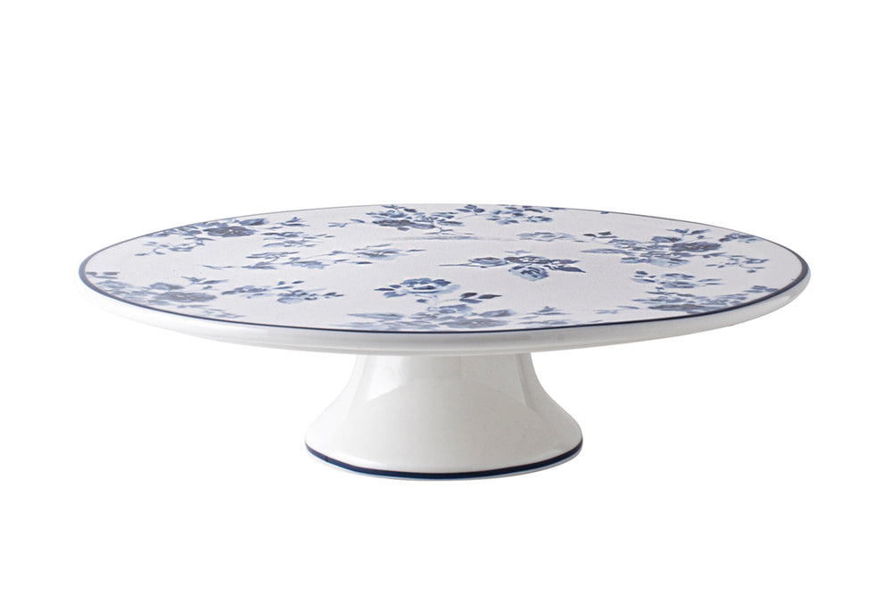 Laura Ashley Blue China Rose Taartplateau op voet 30cm Wit Porselein