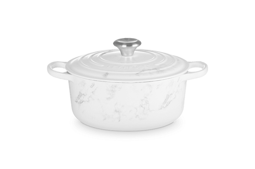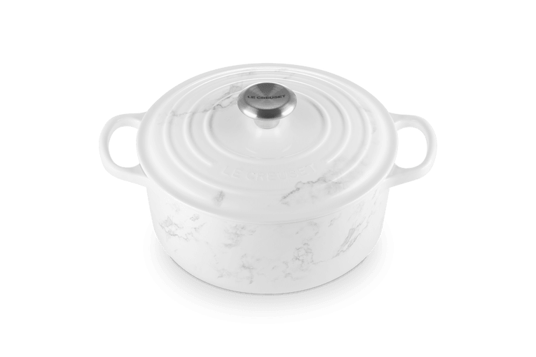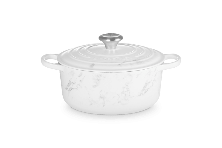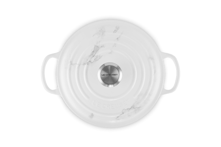 Bereid heerlijke stoofschotels en gebraad met gemak met de Le Creuset braad- / stoofpan van 24 cm en 4,2 liter in Marble.