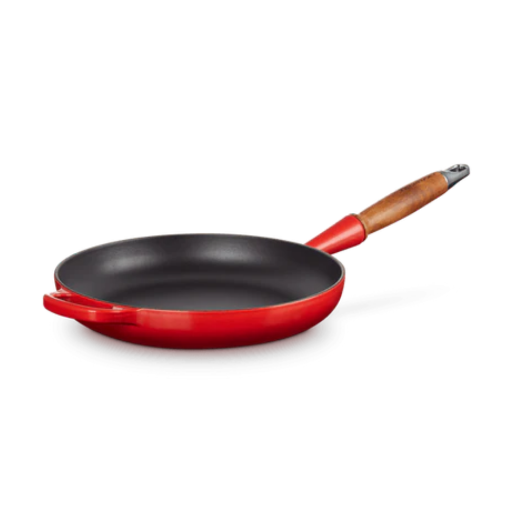Bereid heerlijke gerechten met gemak met de Le Creuset gietijzeren koekenpan van 26 cm en 2 liter in Kersenrood.