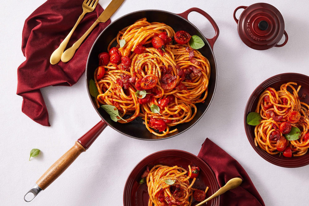 Bereid heerlijke gerechten met gemak met de Le Creuset gietijzeren koekenpan van 28 cm en 2,6 liter in Rhone.