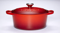 De Le Creuset Gietijzeren ronde braadpan in Kersenrood 26cm 5,3l biedt een ruime capaciteit voor het bereiden van uitgebreide maaltijden. Deze pan combineert de superieure prestaties van gietijzer met een levendige kersenrode kleur.