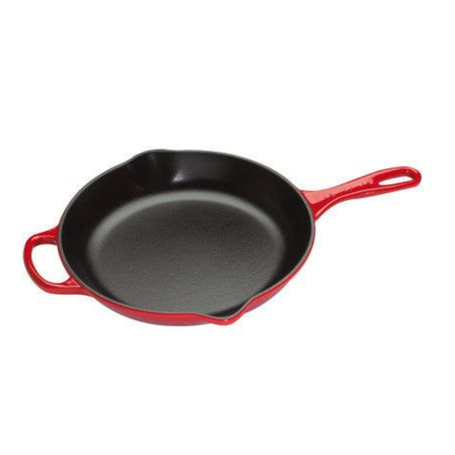 De Le Creuset gietijzeren ronde skillet in Kersenrood, met een diameter van 20 cm, is perfect voor het bakken en braden van kleine tot middelgrote porties vlees, vis en groenten. Deze skillet combineert de functionaliteit van gietijzer met de iconische kersenrode kleur van Le Creuset, wat zorgt voor een stijlvol en praktisch keukengerei.
