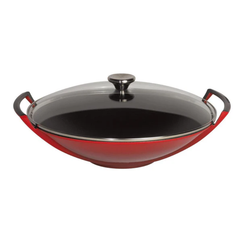Le Creuset Gietijzeren wok in Kersenrood met glazen deksel 36cm 4,5l