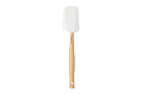 De Le Creuset Premium Medium Spatel in de kleur Wit is een veelzijdige en onmisbare keukenhulp. Gemaakt van hoogwaardig siliconen en voorzien van een stevig houten handvat, is deze spatel perfect voor allerlei keukenklusjes, zoals roeren, schrapen en mengen. Dankzij het flexibele siliconenblad kun je gemakkelijk in hoeken komen zonder je kookgerei te beschadigen, terwijl de witte kleur een frisse en moderne uitstraling geeft.