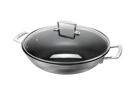 Le Creuset RVS wok met anti-aanbaklaag en glazen deksel 30cm 4,8l