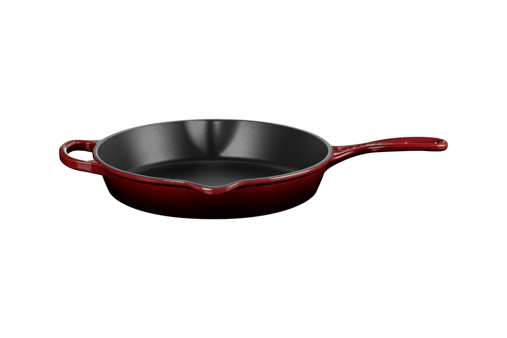 De Le Creuset Skillet Signature Rond Hoog Rhône 26 cm is een hoogwaardige koekenpan die zowel chef-koks als thuiskoks zal bekoren. Met zijn matzwart geëmailleerde binnenkant bereikt hij ongekende hoogten in karamellisatie. Deze veelzijdige pan kan gebruikt worden op de kookplaat, onder de grill of in de oven.