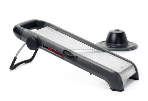 De OXO Mandoline Chef's 2.0 is een professionele keukenhulp. Het biedt maar liefst 21 verschillende snij-keuzes: recht, gegolfd, wafel, frites en Juliënnestrips en 17 verschillende snijdikten. Van 1 tot 9 millimeter in stapjes van 0,5 millimeter.