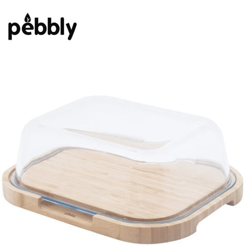 Kenmerken van Pebbly Compact Bamboe Kaasplankje met Glazen Deksel