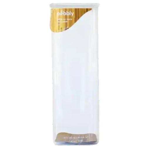 Deze Pebbly Square glazen voorraadpot is geschikt voor diverse etenswaren zoals pasta, rijst, granen, koekjes en snoepjes. De inhoud van de voorraadpot is maar liefst 2200 ml, wat genoeg ruimte biedt om al je favoriete etenswaren op te bergen.