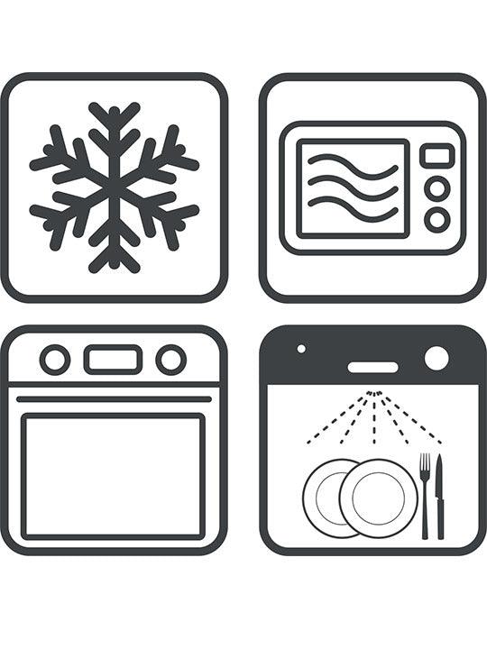 • Geschikt voor: Oven, magnetron, diepvriezer (-20°C)
