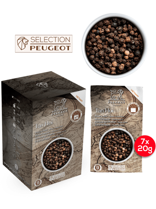 Peugeot doos met 7 zakjes Tan Hoi zwarte peper (7x20g)