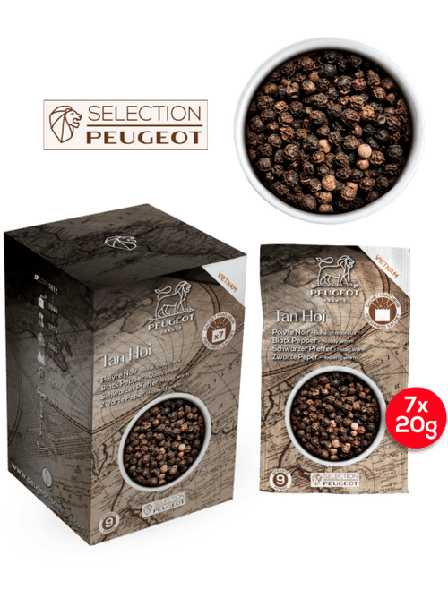 Peugeot doos met 7 zakjes Tan Hoi zwarte peper (7x20g) PROP