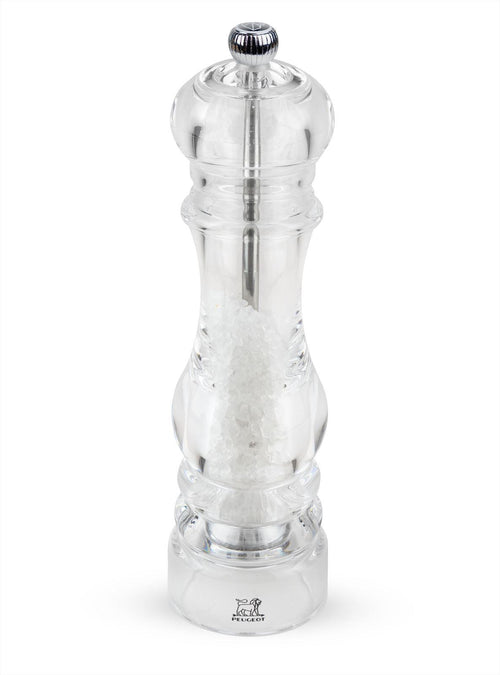 De Peugeot Nancy Zoutmolen is een klassiek en tijdloos model, gemaakt van glanzend transparant acryl. De zoutkorrels zijn duidelijk zichtbaar door het heldere materiaal. Enkele redenen waarom je deze zoutmolen zou moeten overwegen: