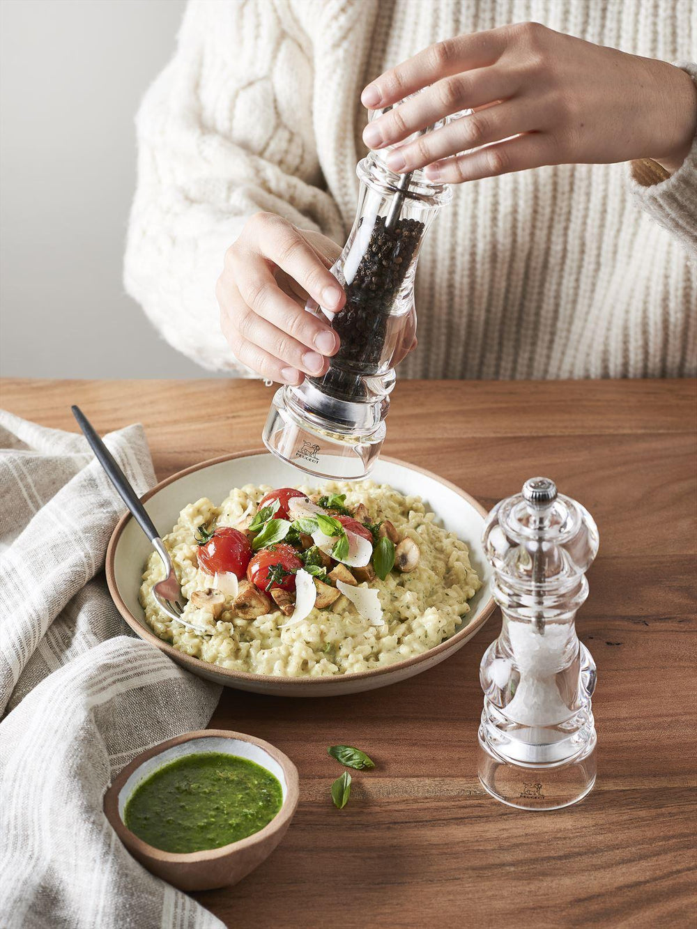 Het minimalistische ontwerp van de Nancy Zoutmolen past bij elke tafelsetting. De royale vormen vervagen onder het visuele transparante effect van acryl. Het zout lijkt aanwezig zonder verpakking.