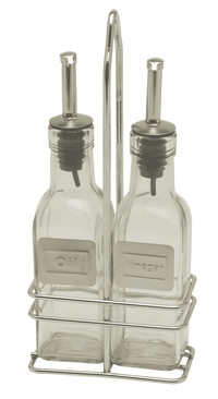 Bewaar olie en azijn in deze olie- en azijnset uit glas van Point-Virgule. Ideaal om eenvoudig je slaatje met olie of azijn te besprenkelen. Met vaste houder om eenvoudig naar de eettafel te verplaatsen en met duidelijke metalen naamplaatjes om de olie en het azijn uit elkaar te halen.