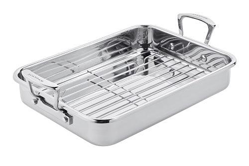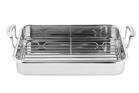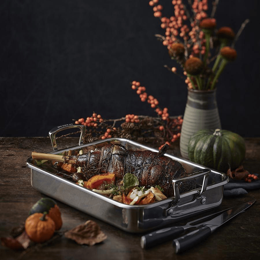 De Scanpan Impact Braadslede is ontworpen om je kookervaring te verbeteren door het bereiden van braadstukken en ovengerechten eenvoudig en efficiënt te maken. De braadslede is vervaardigd uit hoogwaardig roestvrij staal, wat zorgt voor duurzaamheid en een lange levensduur. Het meegeleverde rooster zorgt voor een gelijkmatige warmteverdeling, waardoor je gerechten perfect en gelijkmatig garen. De braadslede is geschikt voor alle warmtebronnen, inclusief inductie, en kan in de oven worden gebruikt tot 260°C. Dit maakt de braadslede uiterst veelzijdig en ideaal voor een breed scala aan kooktechnieken. Na gebruik kan de braadslede eenvoudig in de vaatwasser worden gereinigd, wat zorgt voor extra gemak. De ergonomische handgrepen bieden een veilige en comfortabele grip, zelfs wanneer de braadslede volledig gevuld is. Met de Scanpan Impact Braadslede 43 x 28 cm voeg je een professioneel stuk kookgerei toe aan je keukenuitrusting. De braadslede biedt niet alleen uitstekende prestaties maar ziet er ook stijlvol uit in elke keuken.