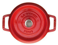 De Staub Cocotte is ontworpen met een geëmailleerd gietijzeren kern voor optimale warmtebehoud. Het heeft een zwaar, vlak deksel voor optimaal behoud van stoom. De vernikkelde knop is hittebestendig voor gebruik in de oven (tot 250°C).