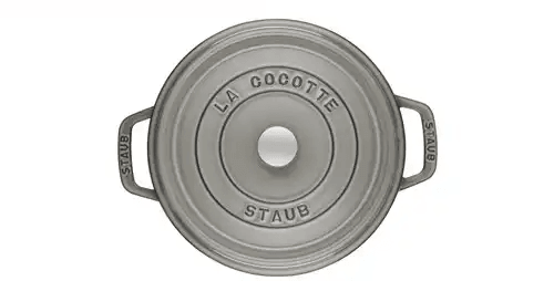 De Staub Cocotte is ontworpen met een geëmailleerd gietijzeren kern voor optimale warmtebehoud. Het heeft een zwaar, vlak deksel voor optimaal behoud van stoom. De vernikkelde knop is hittebestendig voor gebruik in de oven (tot 250°C).