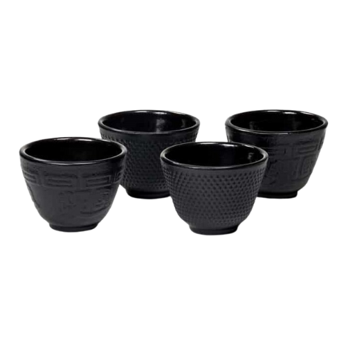 Ervaar de verfijning van de TOKYO 15371 Iron Teakettle met deze schitterende set van vier Japanse Tetsubin gietijzeren theekopjes. Deze kopjes zijn ideaal voor het serveren van je favoriete thee en sluiten perfect aan bij onze Tetsubin theepotten. Dankzij het gietijzeren ontwerp blijven je dranken langer warm, terwijl de gemailleerde binnenkant de authentieke smaak van de thee behoudt. Bovendien zijn deze kopjes veilig en gezond geproduceerd, zonder chemische toevoegingen of lood.