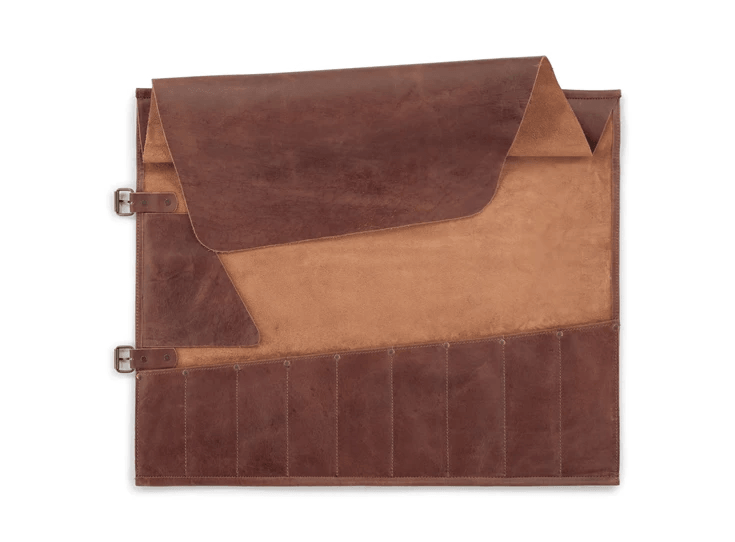 De mesopbergrol is niet alleen functioneel, maar ook gemakkelijk mee te nemen, waardoor je altijd je favoriete messen bij de hand hebt, waar je ook naartoe gaat. Het stevige leer beschermt je messen tijdens transport en opslag, terwijl het eenvoudige ontwerp ervoor zorgt dat je snel en gemakkelijk toegang hebt tot je messen.