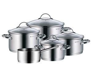 De WMF Provence Plus Pannenset 5-delig is een kwalitatieve kookpannenset, dankzij het Cromargan materiaal. Dit materiaal is duurzaam en bestand tegen krassen en zuren. De pannenset bestaat uit 1 steelpan en 4 kookpannen, ideaal voor het bereiden van diverse gerechten zoals pasta, rijst of soep.