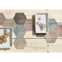 De Zone potonderzetter in hexagon vorm en warm grey kleur is een stijlvolle en moderne toevoeging aan je keuken. Het strakke ontwerp past perfect in een eigentijds interieur.