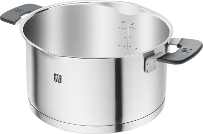 De Zwilling Simplify serie combineert design en functionaliteit. De 5-delige kookset maakt niet alleen indruk met zijn uitzonderlijke uiterlijk, elke kookpot in de set maakt ook indruk met zijn innovatieve functies. De deksels hebben een geïntegreerde zeef in twee maten in de grijze siliconenrand, waardoor vloeistoffen meteen kunnen worden afgegoten.